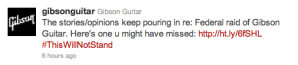 This makes me sad. 1) I have never heard of a responsible company calling the government gestapo, and to sign off on this is bizarre. 2) I like Gibson and their product. I have strict instructions to be buried with a Gibson. At sea. In a burning Viking ship. But the raid is being spun as politically motivated. The evidence, the CEO is a Republican and other guitar manufacturers use the same wood. You have to do better than that. I saw a comment by the importer who supplies Gibson and other guitar manufacturers to the effect that there is nothing special about the wood Gibson uses compared to the other woods, however, people seem to be missing the point that the importer will be in trouble if he is bringing rare and protected woods into the country. So, he’s hardly reliable and without a stake in this. I sincerely hope that Gibson is not using protected woods, and the only way to tell is to see the evidence. Sigh.