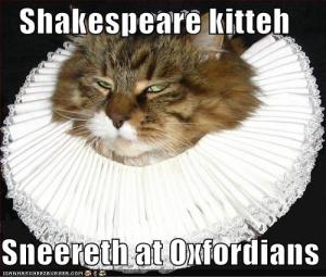 Suck it, experts! I’m not sure what Looney thinks “literary methods” are, but they do involve looking at historical context. He adds, “The imperfection of my own literary equipment…was therefore no reason why I should not attempt the task (p. 4).” It’s no reason why he shouldn’t make the attempt, but it may be a reason some of his conclusions are faulty: he looked at poems ascribed to Oxford and thought they fit Shakespeare. In fact, in many ways, the styles do not match at all. His opinion of actual experts is not high:
