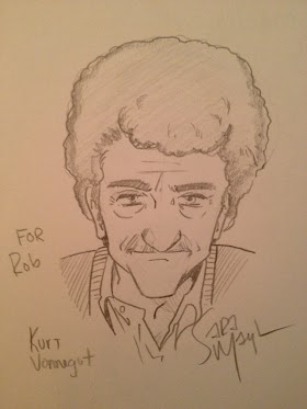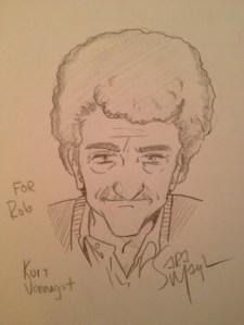 September 22, 2012I just got offline from a fun online hangout with Sara Mayhew, Astrid Johannsen and Kyle Hill. Sara was taking fandom doodle requests and did a drawing of uber-humanist Kurt Vonnegut for me: