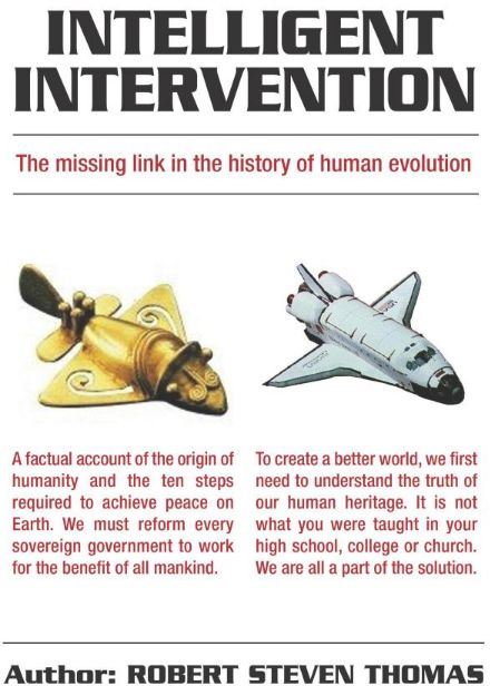 Several months ago, at the Paradigm Symposium, a conference in Minneapolis devoted to the ancient alien hypothesis, during a question and answer session following an especially credulous presentation about Velikovski, I identified myself in front of the crowd as a skeptic with a capital S. After the session, a gentleman came up to me and seemed very interested in talking. His name was Robert Steven Thomas, and he the author of the book Intelligent Intervention: The Missing Link in the History of Human Evolution. After a cordial conversation, he got up to leave. We shook hands and he left the conference hall. A few minutes later, one of conference organizers who had issued me a press pass, came over and handed me a copy of Robert’s book. On the inside cover, it read: