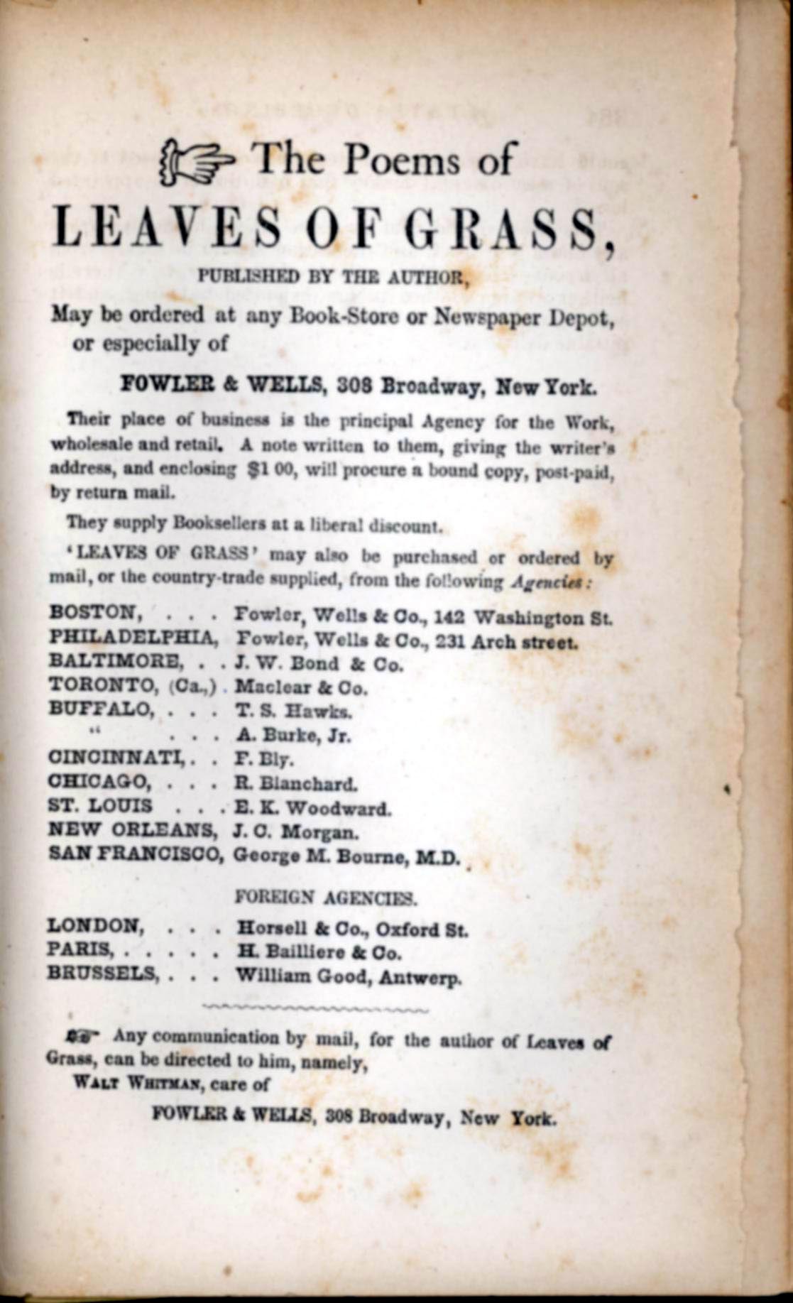 Further, Whitman published his phrenological readings by Lorenzo Fowler in several editions of Leaves of Grass.